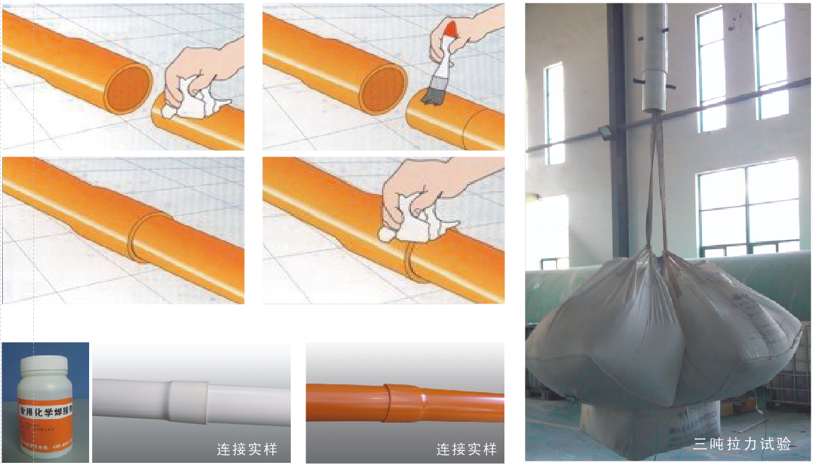采用HPVC管专用化学焊接剂连接方式,连接接口拉伸强度大于本体拉伸强度。